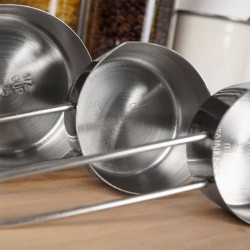 TÄPSED - Igal komplekti tassil on märgistus vastavate mõõtude jaoks, nagu tass, 1/4 tassi jne. Nende abil saate roogade valmistamisel täpselt mõõta vajalikke koostisosi. Profileeritud tila võimaldab koostisainete täpset valamist või ülekandmist.