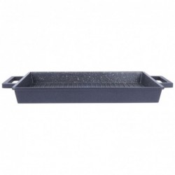- PRAKTILINE – grillimiseks ja praadimiseks mõeldud küpsetusplaat mõõtudega 43 x 27 x 4 cm. Plaadi pind on rihvel. See on varustatud mugavate käepidemetega, mis hõlbustavad kaasaskandmist. Panni sisemõõtmed on 34 x 26 x 3,5 cm.
