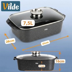 Ristkülikukujuline klaaskaanega röstija. Röster on äärmiselt funktsionaalne. See sobib suurepäraselt hautamiseks, küpsetamiseks ja toiduvalmistamiseks. Grillpanni funktsiooni ja eraldiseisva induktsioonpõhjaga kaas sobib suurepäraselt roogade praadimiseks. See komplekt on väga kasulik igas köögis. Granitica Line'i originaal Vilde toode. Toodetud vastavalt Euroopa standarditele.