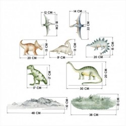 Matist fooliumist lõigatud ja prinditud dinosaurustega seinakleebiste komplekt, mis sisaldab koguni 64 elementi. Kuigi mõnele meeldivad rohusööjad rohkem, on teised röövloomad. Komplekti kuuluvad nii armsad hambulised roomajad kui ka kivi- ja taimeelemendid miniatuurses versioonis . Ideaalne lahendus väikese lastetoa kaunistamiseks. Seinakleebised on ideaalne lahendus mis tahes valitud ruumi koheseks muutmiseks. Ideaalne nii voodi kohale, kirjutuslauale, kummutile, kuhu iganes unistad. Saate neid asetada mis tahes siledale pinnale, mitte ainult seintele, vaid ka mööblile, ustele ja peeglitele. Kleebiste mõõdud: dinosaurused laius 17-30 cm x kõrgus 13-22 cm