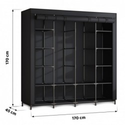Massido tekstiilist garderoob | vastupidavuse ja praktilisuse tagamiseks Mõõtmed: 170 x 45 x 170 cm Peamised omadused: 14 suurenenud kandevõimega riiulit, riidepuulatt, terasraam, 3 iseseisvat riiuliruumi, nelja lukuga sulgur, väga lihtne ja intuitiivne kokkupanek. Valmistatud kvaliteetsetest materjalidest. Terasraam vastupidavate PP-materjalist ühendustega. Veekindel materjal, mida iseloomustab kõrge vastupidavus. Tehnilised andmed: mõõtmed: 170 x 45 x 170 cm, riiulite arv: 14, riputussiinid: 1.