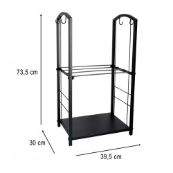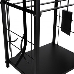See kaminapuude alus lisatarvikutega on varustatud praktiliste kaminatööriistade ja mugavate konksudega riiuli külgedel, et hoida kaminatarvikuid ideaalses korras. Disain tagab stabiilsuse, nii et kaminapuud ja kõik lisatarvikud näevad välja erakordselt esteetiliselt meeldivad. Pühkija, tangid, puutangid ja kühvel on praktilised lisatarvikud, mis suurendavad igapäevase kasutamise mugavust ja tagavad aluse korrasoleku igas ruumis.
