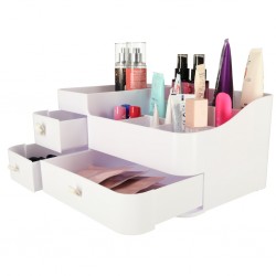 Valge kosmeetikakorraldaja teeb korrastatuse lihtsaks. Sellel on kolm väljatõmmatavat sahtlit ja seitse sektsiooni kosmeetika ja muude aksessuaaride sorteerimiseks. Valge värv sobib ideaalselt igasse interjööri. Tänu kompaktsele suurusele (34 x 22 x 15 cm) ei võta see palju ruumi.