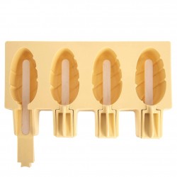 - Valmistatud silikoonist – vorm, mis on valmistatud kõrgeima kvaliteediga silikoonist, pastellkollane värv. Läbipaistvat värvi kaas. Komplektis on 24 puidust jäätisepulka.