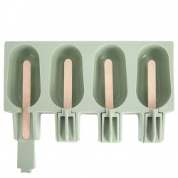 - Valmistatud silikoonist – kõrgeima kvaliteediga silikoonist pastelsetes rohelistes toonides vorm. Läbipaistvat värvi kaas. Komplektis on 24 puidust jäätisepulka.