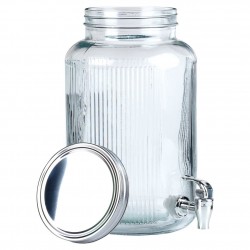 Klaasist joogiautomaat koos kraaniga sobib suurepäraselt vee, limonaadi, mahla, jäätee, maitsevee, aga ka punši serveerimiseks. Tänu kraanile saame oma lemmikjooke lihtsalt muljetavaldavalt serveerida. Purki saab kasutada nii aias kui ka perekohtumistel. Suletud kaanega ei satu meie joogi sisse putukaid. See on valmistatud materjalidest, mis on tervisele ohutud ja toidu suhtes neutraalsed. Ei sobi kuumade jookide jaoks. Toodetud vastavalt Euroopa standarditele.