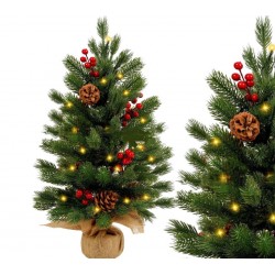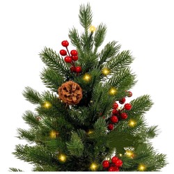 Komplektis on 3x AG13 patareid, mis võimaldavad kohest kasutamist kohe pärast karbist võtmist. Oksad on painduvad, võimaldades hõlpsat vormimist, ning punaste pihlakamarjade ja naturaalsete männikäbide dekoratiivne viimistlus annab puule klassikalise ja piduliku ilme.