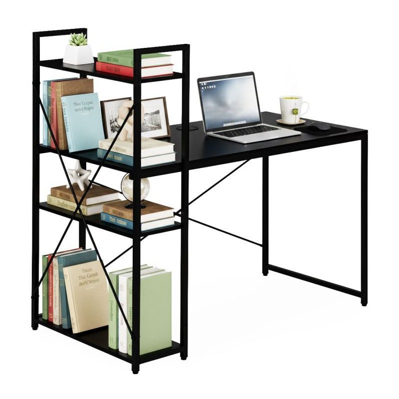Kirjutuslaud 120x60 cm riiulitega, Loft-stiilis, must