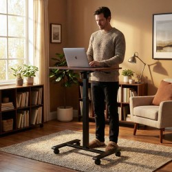 Moodne laud on varustatud pneumaatilise kõrguse reguleerimise mehhanismiga, mis võimaldab lauaplaadi sujuvat kõrgust reguleerida 71,5–112 cm. See ergonoomiline lahendus toetab tervislikku rühti ja parandab töömugavust nii istudes kui ka seistes. Neli lukustatavat ratast võimaldavad laua kiiret ümberpaigutamist ja stabiliseerimist, kui see on soovitud asendisse paigutatud. Praktiline joogihoidja suurendab mugavust ja kaitseb teie seadmeid juhusliku mahavalgumise eest. Maksimaalse kandevõimega 25 kg mahutab see mugavalt sülearvuti, dokumendid ja muud olulised kontoritarbed.