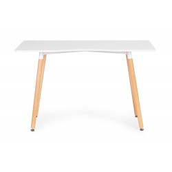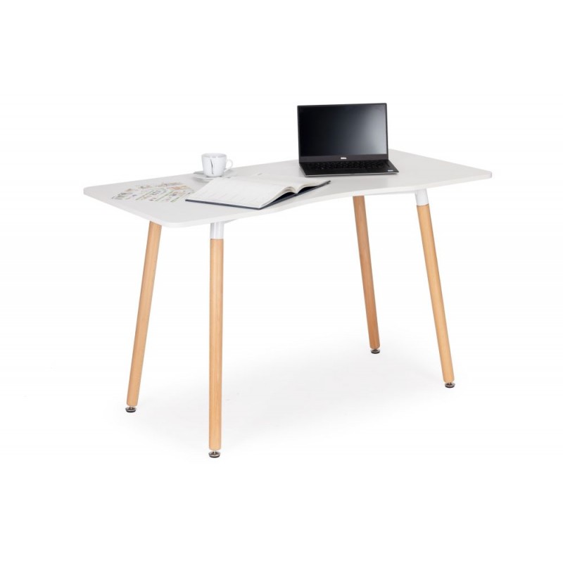 See minimalistlik Skandinaavia stiilis laud on ideaalne lahendus moodsatesse ruumidesse nagu elutuba, söögituba, magamistuba või kodukontor. Selle mitmekülgne disain võimaldab laia kasutusvõimalust – seda saab kasutada nii tualettlauana, töölauana kui ka konsoollauana elutoas. Lauaplaat on valmistatud vastupidavast MDF-plaadist, mis tagab sileda pinna, mis on vastupidav igapäevasele kasutamisele. Lauaplaadi kontuurne esiosa suurendab töötamise ajal mugavust ja lisab üldisele disainile elegantsi. Disain on hoolikalt läbi mõeldud – massiivsed männipuidust jalad on kinnitatud metallraamile, tagades stabiilsuse ja vastupidavuse. Laud on varustatud kaitsejalgadega, mis võimaldavad täpset nivelleerimist isegi ebatasasel pinnal ja kaitsevad samal ajal põrandat kriimustuste eest.