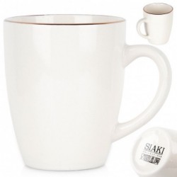 Valge kuldse kaunistusega kruus kohvi, tee ja jookide joomiseks. Selle lihtne ja klassikaline kuju muudab kruusi kasutamise väga mugavaks. See sobib ideaalselt koduseks kasutamiseks. See sobib hästi kõigi lauanõudega. Toodetud vastavalt Euroopa standarditele.