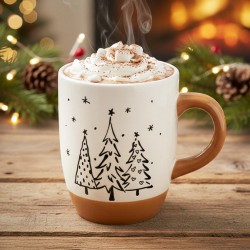 - Puude motiiviga pühadekruus – sangaga kruus jookide joomiseks, sobib suurepäraselt igapäevaseks kasutamiseks. Kruusi maksimaalne maht on 330 ml ja mõõtmed 11,5 x 8,5 x 10 cm. Ideaalne tee, kohvi, kakao ja muude jookide joomiseks. See on ideaalne kaaslane talveõhtuteks.