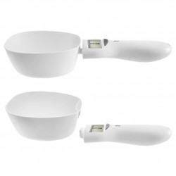 - Digitaalne köögikaal lusika kujul – praktiline käeshoitav kaal, mis sobib ideaalselt väiksemate koguste lahtiste ja vedelate koostisosade täpseks mõõtmiseks. Ideaalne jahu, suhkru, vürtside, kakao, õli, piima ja pähklite jaoks. Saate seda kasutada ka loomse toidu mõõtmiseks. Kokkupandult on mõõtetopsi mõõtmed 25 x 9 x 5 cm. Mõõtetopsi maht on 270 ml. Toiteallikaks on 2 AAA patareid (ei kuulu komplekti). Maksimaalne kaal kuni 1 kg.