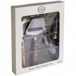 Vein ja juustutarvikud on valmistatud vastupidavast materjalist. Komplekti kuulub neli praktilist tarvikut: korgitser, veinikork, juustunuga ja viilutaja. Komplekt on funktsionaalne ja stiilne, muutes selle dekoratiivseks elemendiks köögis või söögitoas. Aksessuaarid sobivad nii pidudeks kui ka intiimseks koosviibimiseks. Aksessuaaride komplekt on ideaalne kingiidee veini- ja juustuhuvilisele. Toodetud vastavalt Euroopa standarditele.