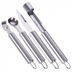 - PRAKTILINE – neljast puu- ja köögiviljatööriistast koosnev komplekt. Iga tööriist täidab erinevat funktsiooni. Komplekti kuuluvad: õunasüdamik pikkusega 21,5 cm, melonipall 17 cm, kumer puuviljanuga pikkusega 20 cm ja tsitrusekoorija pikkusega 16 cm.