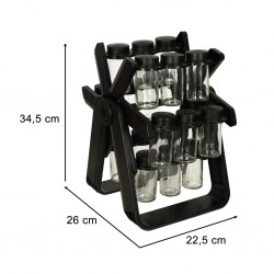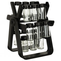 Pöörlev vürtside korraldaja. See teeb teie kõige sagedamini kasutatavate vürtside korraldamise lihtsaks. Komplekt sisaldab 18 keeratavat anumat. Korraldaja on mattmust, mistõttu näeb see teie köögitasapinnal elegantne välja. Pöörlev disain võimaldab teie vürtsidele hõlpsat juurdepääsu.