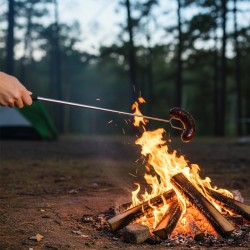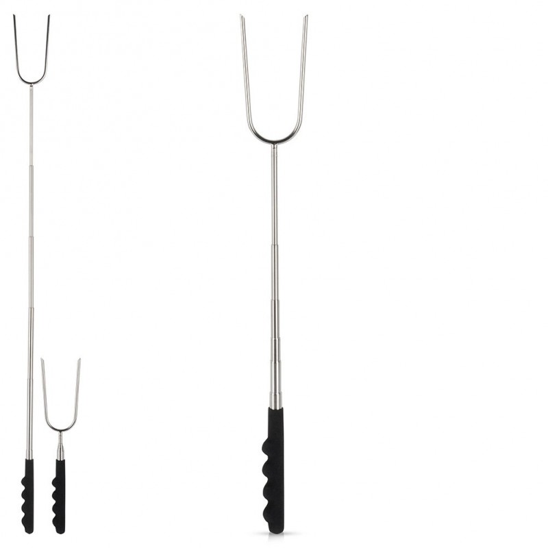 - Mugav pikkuse reguleerimine – tänu pulga lahti- ja kokkuklappimise võimalusele saame oma vajadustele vastava ideaalse pikkuse reguleerida, mis tagab mugava kasutamise lõkke kohal. Pikk käepide kaitseb meid käte põletamise eest sütes.