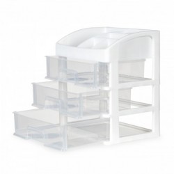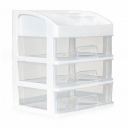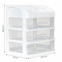 Korraldajal on kuus sektsiooni ja kolm sahtlit. Sahtlid on läbipaistvad, mis teeb sisu hõlpsaks tuvastamiseks ilma neid avamata. See sobib ideaalselt ehete, kosmeetika või kontoritarvete hoidmiseks.