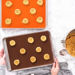 Moodne pruun silikoonplaat, mille ühel küljel on mittenakkuv kate ja teisel pool mittenakkuva kate, mis takistab mati libisemist, tänu millele hoiab see tööpinda suurepäraselt. Matt sobib suurepäraselt kookide, küpsiste ja pitsa sõtkumiseks. Täiesti ohutu tervisele ja toidule neutraalne. Ärge kasutage lõikamiseks teravaid nuge, kuna see võib plaate kahjustada. Tšehhi kaubamärgi Orion originaaltoode. Toodetud vastavalt Euroopa standarditele.
