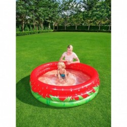 Beebi esimene bassein! Pühade ajal armastavad lapsed õues aega veeta, seega kuidas saaksime nende igapäevast lõbu atraktiivsemaks muuta? Vali Bestway täispuhutav bassein. Esitletud basseini eristab tõeliselt tugev konstruktsioon, mis on loodud kolme iseseisva täispuhutava rõnga abil. Kuna need on paksud ja kindlalt valmistatud, tagavad need kogu konstruktsiooni stabiilsuse ja on lastele mugavaks toeks. Basseini põhi on pehme ja pakub mugavat istet. Peamised omadused: maasikamustriga pehmed täispuhutavad seinad 3 täispuhutavat rõngast komplektis paranduspaik Tehnilised andmed: Mõõtmed: 160 x 38 cm Materjal: PVC Kaal: 1,8 kg Basseini maht: 390 liitrit Soovitatav vanus: alates 2. eluaastast