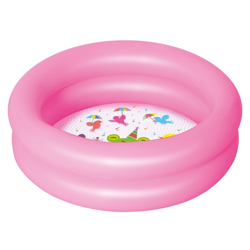 Täispuhutav bassein 61 x 15 cm BESTWAY 51061 Täispuhutav aiabassein Play Bestway on mõeldud suvise meelelahutuse kõige noorematele fännidele. See kaunis roosa bassein on ideaalne võimalus minna õue ja sulistada vees päikese kuumade kiirte käes, selle asemel, et kodus igavleda. Lõbu teevad meeldivamaks basseini põhja trükitud rõõmsad loomad. Peamised omadused: ilus sinine värv ilus trükk põhjal ideaalne terrassile ja aeda 2 täispuhutavat rõngast komplektis paranduspaik toode on saadaval kahes värvitoonis: roosa ja sinine Tehnilised andmed: Mõõtmed: 61 x 15 cm Materjal: PVC Kaal: 0,25 kg Basseini maht: 21 liitrit Soovitatav veetäitekogus: 80% Soovitatav vanus: alates 2. eluaastast Saadaval roosa või sinise värviga.
