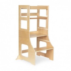 Köögiabiline on valmistatud paksust vastupidavast vineerist (12mm) . See töötab suurepäraselt köögis, et laps saaks koos pereliikmetega süüa valmistada. Astmeid saab paigaldada erinevatele kõrgustele, nii et seda saab kasutada erinevate tööpindadega. Sellel on ka lisavarras, mis takistab kukkumist.