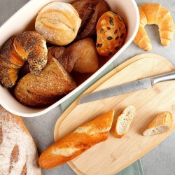 Kaasaegse disainiga mahukas reisikott. Sellel on praktiline puittahvli kujuline sulgur, nii et saame seda kasutada leiva lõikamiseks. See näeb köögis väga muljetavaldav välja. Tänu suurele mahutavusele mahutab see erinevat tüüpi leiba. Lihtne ja klassikaline disain sobib igasse kööki. Soovitame plaati kaks korda õlitada rapsiõli või oliiviõliga, üleliigne maha pühkida ja jätta mõneks tunniks seisma. Seejärel peske hoolikalt kuumas vees, pühkige ja laske täielikult kuivada. Tänu sellele töötlusele imab plaat vähem niiskust ja säilitab kauem õige kuju. Plaati ei tohi pesta nõudepesumasinas. Originaal Vilde toode. Toodetud vastavalt Euroopa standarditele.