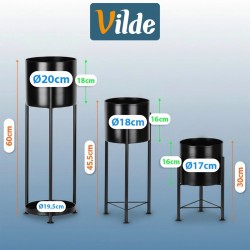 Moekas musta värvi kolmest lillealusest koosnev komplekt, mis on asetatud mustale struktuurile. Need sobivad ideaalselt kasutamiseks kodus ja kontoris. Need sobivad igasse interjööri. Lillepeenardesse saame paigutada elus- ja kunsttaimed. Suurel lillealusel on ka alus taimede või taimetarvikute hoidmiseks. Lillealused annavad igale interjöörile ainulaadse iseloomu ja on kauniks dekoratiivseks elemendiks.Originaalne Vilde toode.Valmistatud vastavalt Euroopa standarditele.