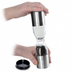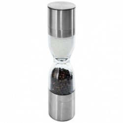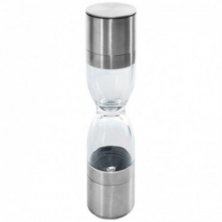 Liivakellakujuline käsiveski. See topeltveski võimaldab jahvatada ühes seadmes kahte erinevat vürtsi eraldi. Lihtsalt keerake veski, et maitsestada oma rooga värskelt jahvatatud vürtsidega. Topeltveski sobib ideaalselt nii pipra kui ka soola jaoks ning seda saab kasutada ka muude maitseainete jaoks. Hädavajalik komplekt igas köögis. Lihtne puhastada ja kasutada. Läbipaistva disainiga veski sulandub hästi teiste lauanõudega. See sobib suurepäraselt restoranides kasutamiseks. Käsiveski on alati end tõestanud kingiidee, näiteks kodumajapidamiseks. Ohutu tervisele ja neutraalne toidule. Toodetud vastavalt Euroopa standarditele.