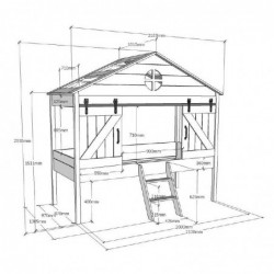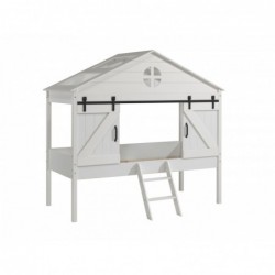 Küüni stiilis poolkõrge majavoodi,täismänni ja valgeks värvitud MDF kombinatsioon. Sellele voodile sobib madrats mõõtmetega 90x200 cm. Kindlasti leiab sealt autentseid taluelemente, nagu tuntud siiniga taluuksed. Ilus ümmargune aken ukse kohal ja redel täiendavad pilti. Sellele voodile sobib rullliistudega alus. Uksed on ohutuse tagamiseks püsivalt paigaldatud ja neid ei saa sulgeda.