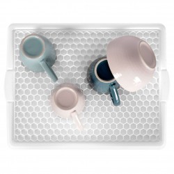 Nõudekuivatusmatt on suurepärane valik nõude kuivatamiseks. Mõeldud kokkupuuteks toiduga. Lihtne puhastada ja mugav kasutada. See on suurepärane alternatiiv klassikalistele nõuderiiulitele. Kasulik igas köögis, see võimaldab mugavalt ära panna pestud tassid, taldrikud või muud nõud. Selle elegantne ja minimalistlik disain sobib ideaalselt iga interjööri stiiliga. Toodetud vastavalt Euroopa standarditele.
