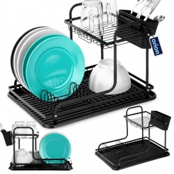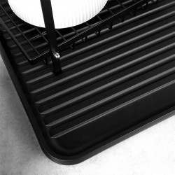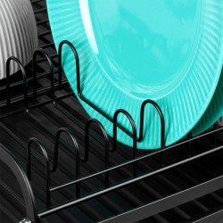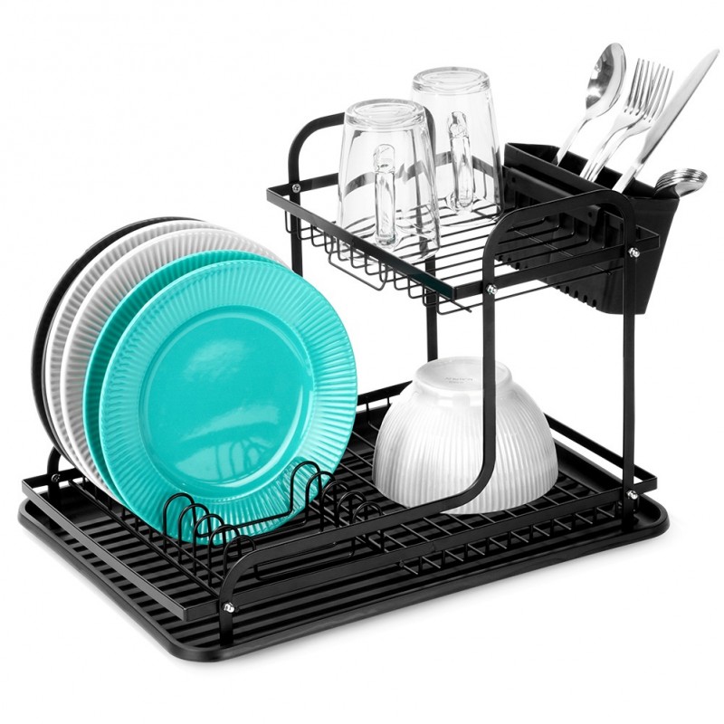 Soliidne ja vastupidav – Nõudriiul on valmistatud metallist mattmustas värvitoonis. See on varustatud kvaliteetsest mustast plastikust kandikuga. Nõuderesti on lihtne puhastada ja mugav kasutada.