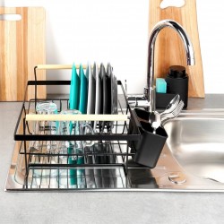 - Tugev ja vastupidav – roostevabast terasest kuivati, must. Varustatud kõrgeima kvaliteediga mustast plastikust valmistatud eemaldatava kandiku ja söögiriistade äravooluga.