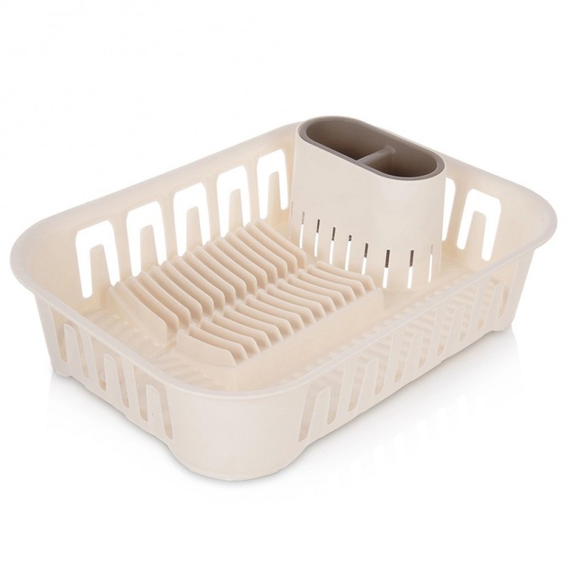 - Tugev ja vastupidav – kuivati on valmistatud täielikult kreemikast plastikust ja eemaldatav söögiriistade konteiner on pruuni värvi. Kuivati põhi on mõeldud tilkuva vee kogumiseks, kaitstes köögi töötasapinda märjakssaamise eest, ja sellel on koht, mis hõlbustab vee äravoolu.
