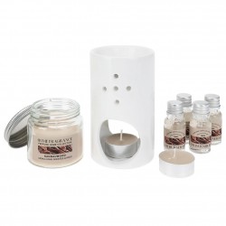 - Elegantne keraamiline kamin – komplekti kuulub stiilne keraamikast lõhnav kamin. Selle universaalne disain sobib igasse interjööri ja selle ülesanne on õlisid kuumutada ja nende kaunist aroomi vabastada.