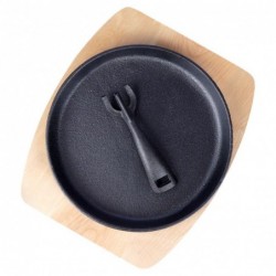 Eemaldatava käepidemega ümmargune malmpann on ideaalne erinevate roogade valmistamiseks. Seda saab kasutada igal pliidil, aga ka otse grillil või lahtisel tulel. Pann on äärmiselt tugev ja raske. Õige kasutamise korral kestab see palju aastaid. Malm soojeneb ühtlaselt ja hoiab soojust kaua, mis tähendab, et serveeritud nõud püsivad kauem soojas. Tahvel kaitseb laua pinda otsese kokkupuute eest kuuma panniga, mis võib vältida kahjustusi või kriimustusi. Komplekt võimaldab valmisroogade muljetavaldavat esitlust laual. Nõudepesumasinas pesemine pole soovitatav. MÄRKUS! Pärast iga kasutamist peske, kuivatage kuiva lapiga ja õliga. Toodetud vastavalt Euroopa standarditele.