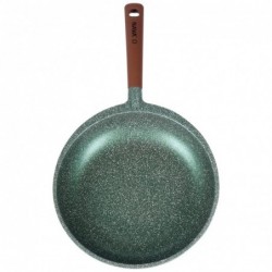 USALDUSVÄÄRNE - 28 cm läbimõõduga graniitkattega pann. Välismõõdud: pikkus 51,5 cm, panni kõrgus 6,5 cm, kõrgus koos käepidemega 8,5 cm. Valmistatud survevalualumiiniumist, tugeva metallkonstruktsiooni ja raske põhjaga sobib ideaalselt soojendusplaadiga. Pann on tumerohelist värvi. Käepide on pruuni kaubamärgiga. Tugevdatud välispind on väga kriimustuskindel ning selle sile, matt pind tagab lihtsa puhastamise.