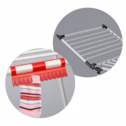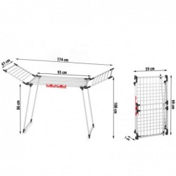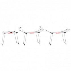 Pesukuivati, suur kuivatuspind - 19 m², 2 kokkupandavat tiiba, pesuhoidjad, libisemiskindlad jalad, kiire kokku- ja lahtivoltimine. Praktilised lahendused: riidepuud riiete kuivatamiseks – riputades riideid selleks otstarbeks mõeldud lisakäepidemetele, säästate kuivatil ruumi, kokkupandavad/volditavad käed, libisemiskindlad jalad. Üks, kaks – ja oledki valmis! Massido pesukuivatis oleme paigutanud pulgad üksteisest sellisele kaugusele, et pesu saaks vabalt aurustuda ja kuivada. Tänu joontevahelistele sobivatele vahedele aurustub vesi kiiresti ning pesu kuivab ühtlaselt ja on kohe kokkuvoltimiseks valmis!