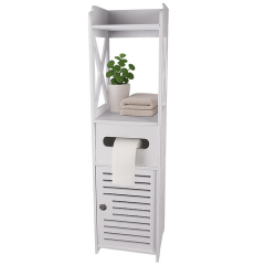Eraldiseisev vannitoakapp tualettpaberihoidjaga, lukustatav, valge riiul