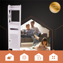 Valge seisukapp on lahtiste ustega ja tualettpaberihoidjaga. See sobib ideaalselt kosmeetika ja puhastusvahendite hoidmiseks. Võtmega lukuga tagab see ohutuse ja kaitseb sisu laste juurdepääsu eest. Esteetiline disain ja kompaktne vorm muudavad selle ideaalseks igasse vannituppa – nii moodsasse kui ka klassikalisse.