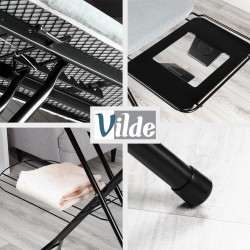 Mugav ja stabiilne triikimishülsiga triikimislaud, mida saab kasutada ka reisilauana. Asendamatu igas kodus. Laua mõõtmed võimaldavad triikida suuremaid riideid ja muid tekstiile, mis tuleb kasuks nt triikimisel. voodipesu või kardinad. Sobib ka aurutriikimiseks. Valmistatud vastupidavatest materjalidest. Õige kasutamise korral kestab see palju aastaid. Originaal Vilde toode. Toodetud vastavalt Euroopa standarditele.