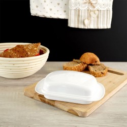 Käepärane võiroog, mis sobib suurepäraselt või säilitamiseks ja serveerimiseks. Trendikas, valge värv ja klassikaline disain tagavad, et võiroog on kaunis laua- ja köögikaunistus, mis sobib kokku iga lauanõude komplektiga. Lihtne kasutada ja puhastada. Kasulik igas kodus. See tõestab end nii igapäevases kasutuses kui ka pidude ajal. Valmistatud tervisele ohututest ja toiduneutraalsetest materjalidest. Toodetud vastavalt Euroopa standarditele.