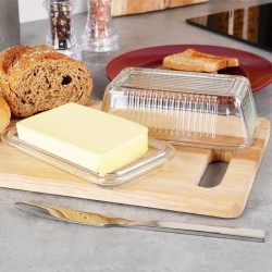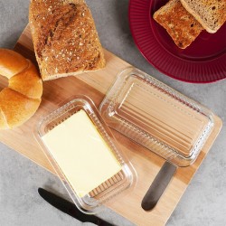 KLASSIKALINE KUJU - Võinõu on klassikalise kujuga, seega sobib see iga köögi varustusse ning lauale asetatuna sobib iga lauanõude komplektiga. Läbipaistev värv võimaldab võid korralikult kuvada ja selle suurust kontrollida.