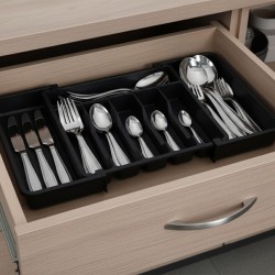- Reguleeritava laiusega sahtli korraldaja - Paindlik sobivus erineva suurusega köögisahtlitele - ideaalne kord olenemata köögi paigutusest