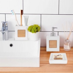 • Valmistatud dolomiidist ja bambusest – seebialus on valmistatud kõrgeima kvaliteediga, vastupidavast valgest dolomiidist. Sellel on bambuspuidust dekoratiivne element.