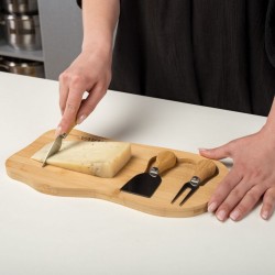 JUUSTULAUD - Juustude lõikamiseks ja serveerimiseks mõeldud komplekt. Komplektis on juustulaud ja kolm nuga (nuga, spaatel ja kahvel), mida kasutatakse juustude jagamiseks, lõikamiseks ja serveerimiseks. Tahvli mõõdud kokku on: 33 x 17 x 2,5 cm. Noad on 12 ja 12,5 cm pikkused.