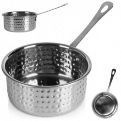 Roostevabast terasest minikastruli kujuline serveerimisnõu sobib suurepäraselt friikartulite, röstitud kartulite, köögiviljade ja paljude muude roogade või suupistete efektseks serveerimiseks. Sobib nii soojadele kui ka külmadele roogadele. Soliidselt valmistatud moekas hõbedases värvitoonis. Selline roogade serveerimisvorm on väga muljetavaldav. Miniatuurne kastrul on universaalse välimusega, mis sobib paljudeks puhkudeks. Sobib nii koduseks kasutamiseks kui ka professionaalseks kasutamiseks näiteks gastronoomilistes asutustes. Valmistatud vastavalt Euroopa standarditele.