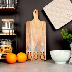 Juustuvaagna serveerimiseks. Lisaks on see varustatud nugadega juustude jagamiseks, lõikamiseks ja serveerimiseks ning kahvliga juustude korjamiseks. Tahvel on äärmiselt muljetavaldav ja sobib suurepäraselt perekondlikeks koosviibimisteks, pidudeks või olulisteks pidustusteks. Selle abil saame muljetavaldavalt välja panna juustu või muid suupisteid. Tahvel on originaalne kingiidee juustule ja teistele. Lihtne puhastada ja kasutada. Toodetud vastavalt Euroopa standarditele.