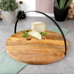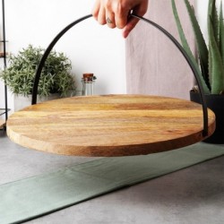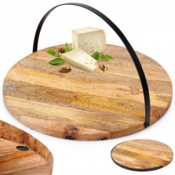Mugava käepidemega serveerimislaud - Praktilise käepidemega serveerimislaud roogade, suupistete ja söökide jaoks. Käepide teeb kaasaskandmise lihtsamaks ning sellel on ka nöör, mis võimaldab kandikut vabalt riputada. See võib olla ka teiste roogade alus. Kandik on ümara kujuga ja mõõtmetega 38,5 x 2 cm, kõrgus 21 cm ülestõstetud käepidemega.