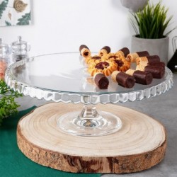 PRAKTILINE - Laineliste äärtega pjedestaal tordialus. Statiivi läbimõõt on 32 cm ja kõrgus 11,5 cm.